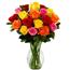 描述: 17朵多彩玫瑰与当季绿植组成。